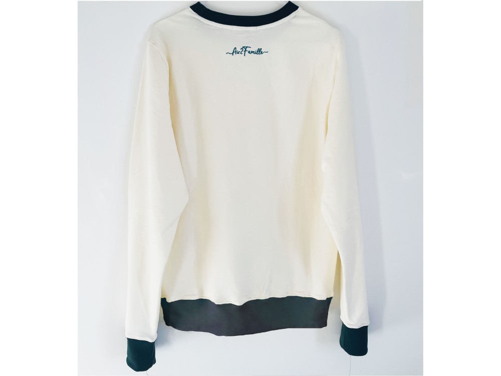 Magnifique et très confortable sweat blanc cassé off white, composé et assemblé à partir de tissu 100% coton GOTS.